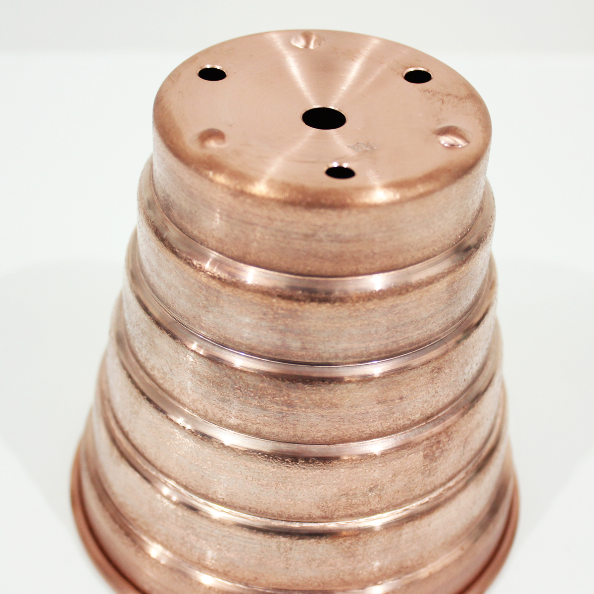 家庭での快適な時間を過ごすため、今流行しているサボテンやアガベなどの多肉植物や室内植物を植える鉢を、害虫をブロックする銅イオンを配合したオリジナルポット。経年変化で表情が変わるので、植物の成長とともに更に楽しめますよ。