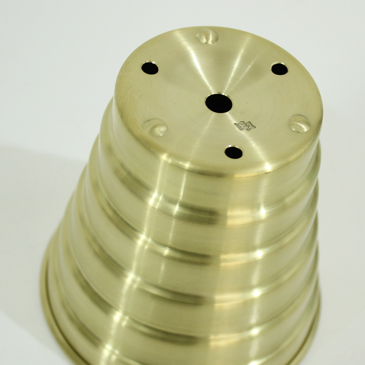Traditional Technique by Japanese craftsman.Put metal on the rotating mold and Using the principle of lever, "spatula and top" is pressed and molded while rolling. Change to the finishing spatula and adjust the spatula's eyes to finish. By adjusting the pressing force by making full use of many spatulas, complicated shapes that cannot be produced by press working are possible. By applying a spatula and tightening the material, the strength increases and a highly accurate product is completed. Unlike the mass-produced type, each piece of art is made by a craftsman.