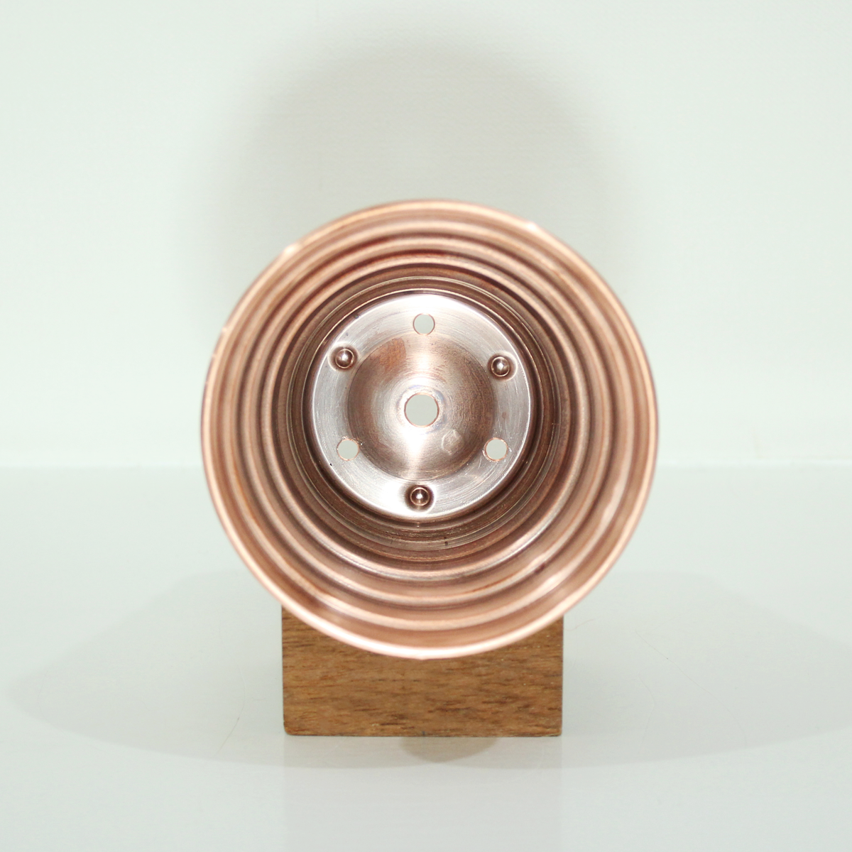 Traditional Technique by Japanese craftsman.Put metal on the rotating mold and Using the principle of lever, "spatula and top" is pressed and molded while rolling. Change to the finishing spatula and adjust the spatula's eyes to finish. By adjusting the pressing force by making full use of many spatulas, complicated shapes that cannot be produced by press working are possible. By applying a spatula and tightening the material, the strength increases and a highly accurate product is completed. Unlike the mass-produced type, each piece of art is made by a craftsman.